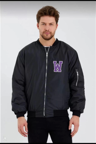 Unisex Uzun Kol Baskılı Bomber Ceket - Siyah
