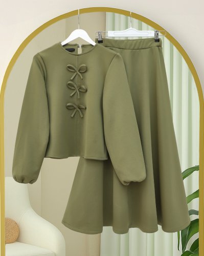 Önü Fiyonk Detaylı Etekli Scuba Takım -Haki