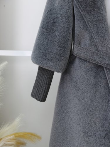 Kolu Ribanalı Şal Yaka Astarlı Kaşe Kaban -Füme