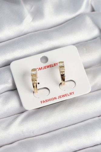 Pirinç Gold Renk Zirkon Taşlı Vintage Kadın Küpe