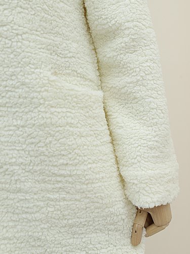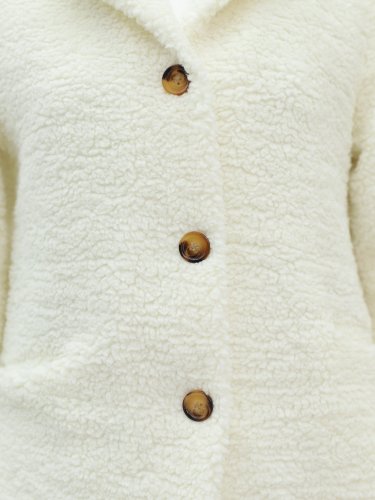 Düğmeli Astarlı Önden Cepli Peluş Kaban -Ekru