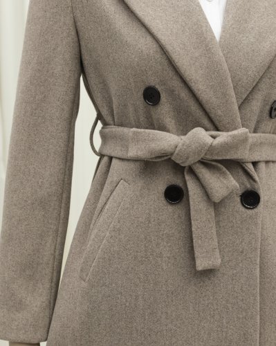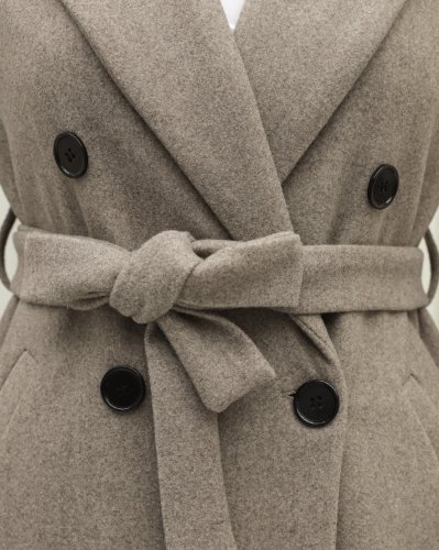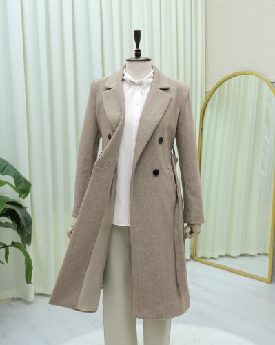 Tek Düğmeli Cepli Kemerli Astarlı Kaşe Kaban -Taş