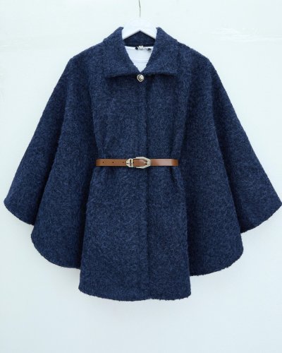Tek Düğmeli Beli Kemerli Sakallı Panço -Laci