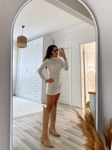 Kadın uzun kollu peluş mini boy elbise