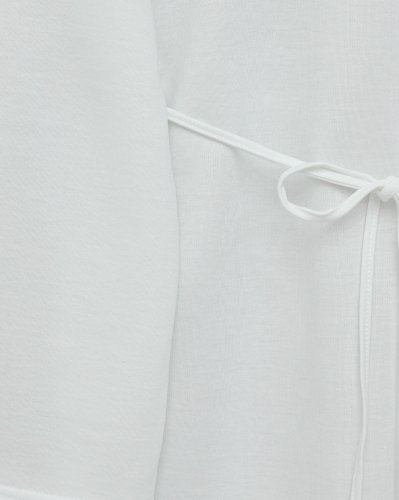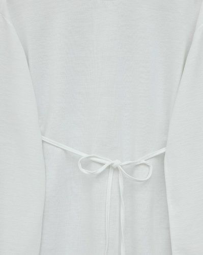 Yuvarlak Yaka Beli Bağlamalı Penye Tunik -Beyaz