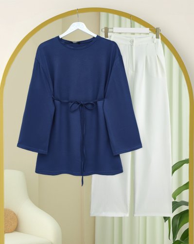 Yuvarlak Yaka Beli Bağlamalı Penye Tunik -Laci