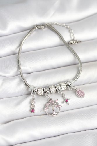 Pirinç Gümüş Renk Yaşam Ağacı Charmlı Kadın Bileklik