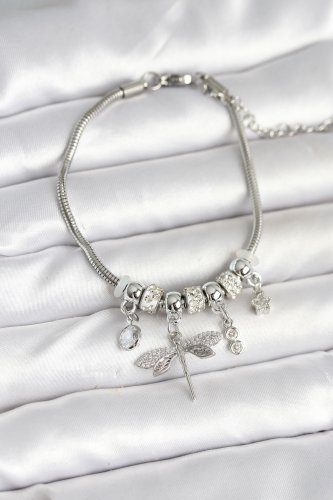Pirinç Gümüş Renk Yusufçuk Charmlı Kadın Bileklik