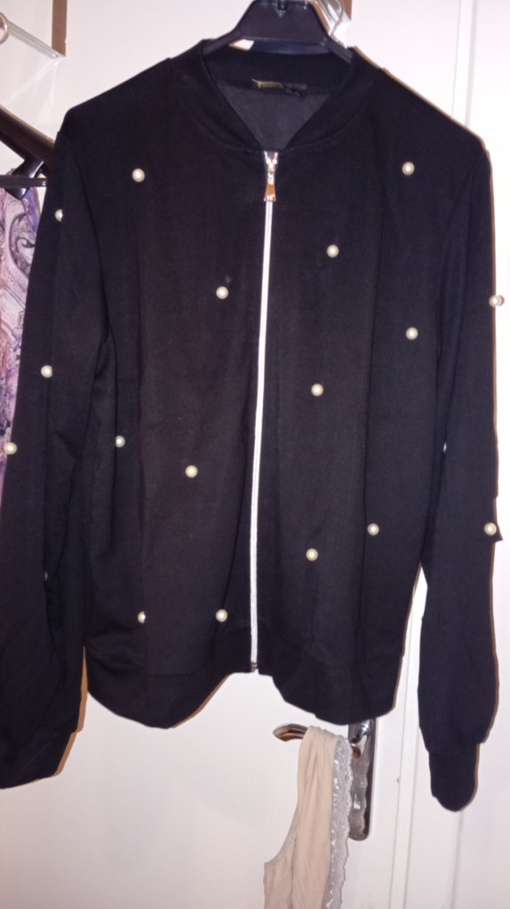 Kadın uzun kollu önden fermuarlı incili kısa modal ceket