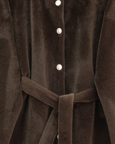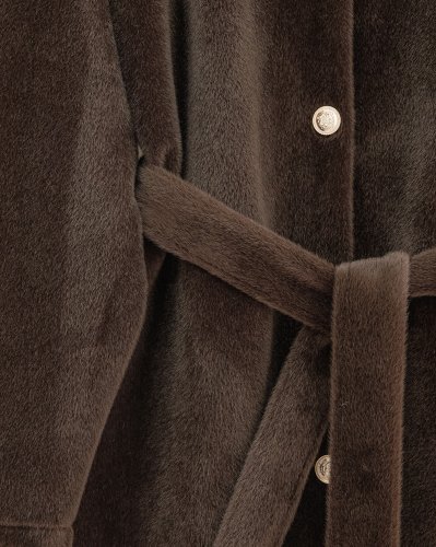 Düğmeli Beli Bağlamalı Kürklü Ceket -Toprak