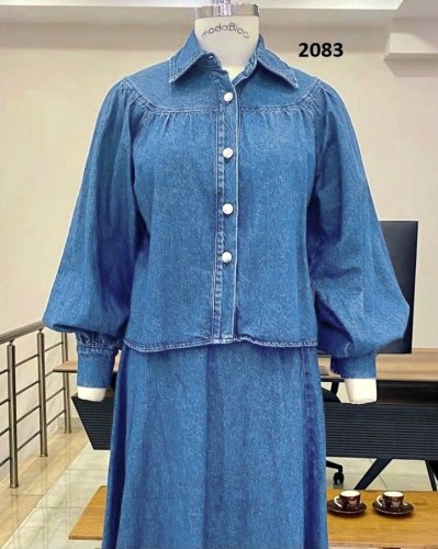 Beli Kemerli Önü Düğmeli Etekli Kot Takım -İndigo