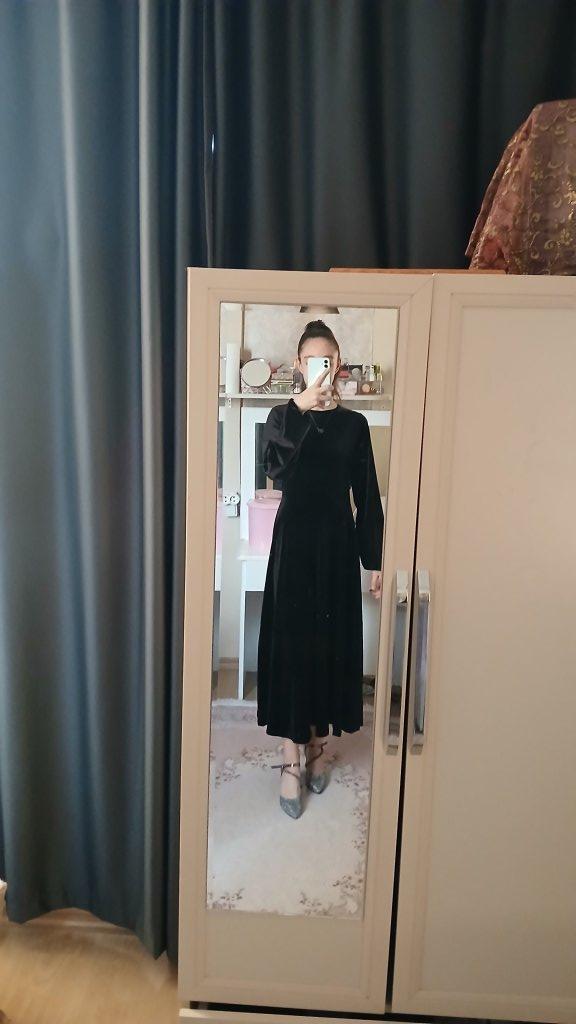Kadın uzun kollu bisiklet yaka midi kadife elbise