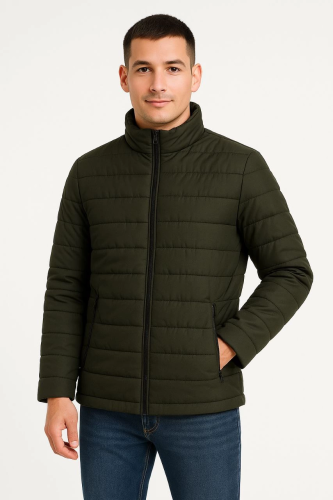 Erkek Bomber Mont Ceket Su İtici Kumaş Kapitone Astarlı Fermuarlı Kışlık - Haki