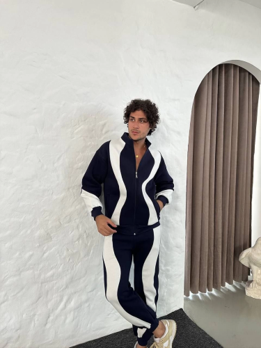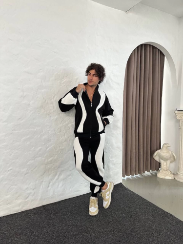 Erkek Premium Parçalı Eşofman Takım - Dik Yaka Fermuarlı Sweatshirt - Siyah