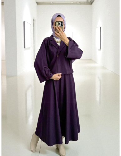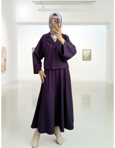 Tek Düğmeli Etekli Keçe Takım -Mor