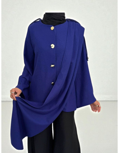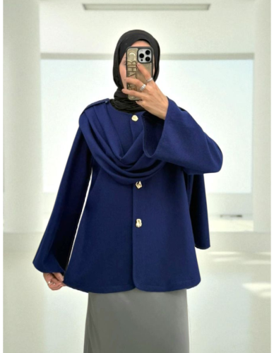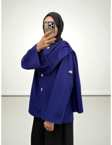 Şal Detaylı Kışlık Keçe Ceket -Laci