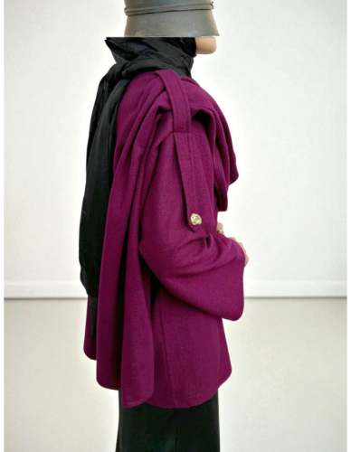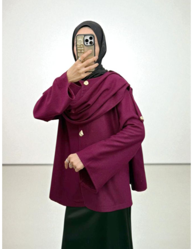 Şal Detaylı Kışlık Keçe Ceket -Mürdüm