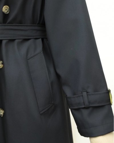 Kolu Ve Omuzu Apoletli Cepli Uzun Trençkot -Siyah