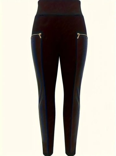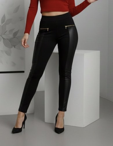 Kadın yüksek bel deri detaylı fermuarlı dalgıç tayt