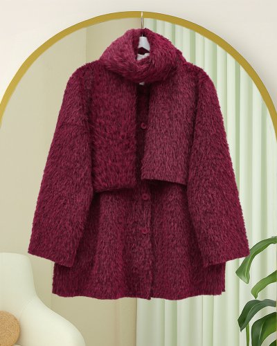 Atkı Detaylı Önü Düğmeli Sakallı Ceket -Bordo