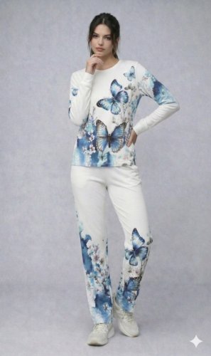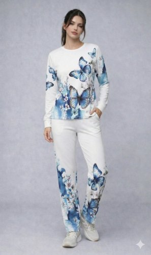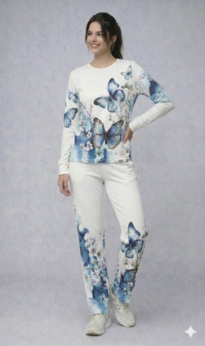 Kadın uzun kollu bisiklet yaka kelebek desenli iki iplik alt üst takım