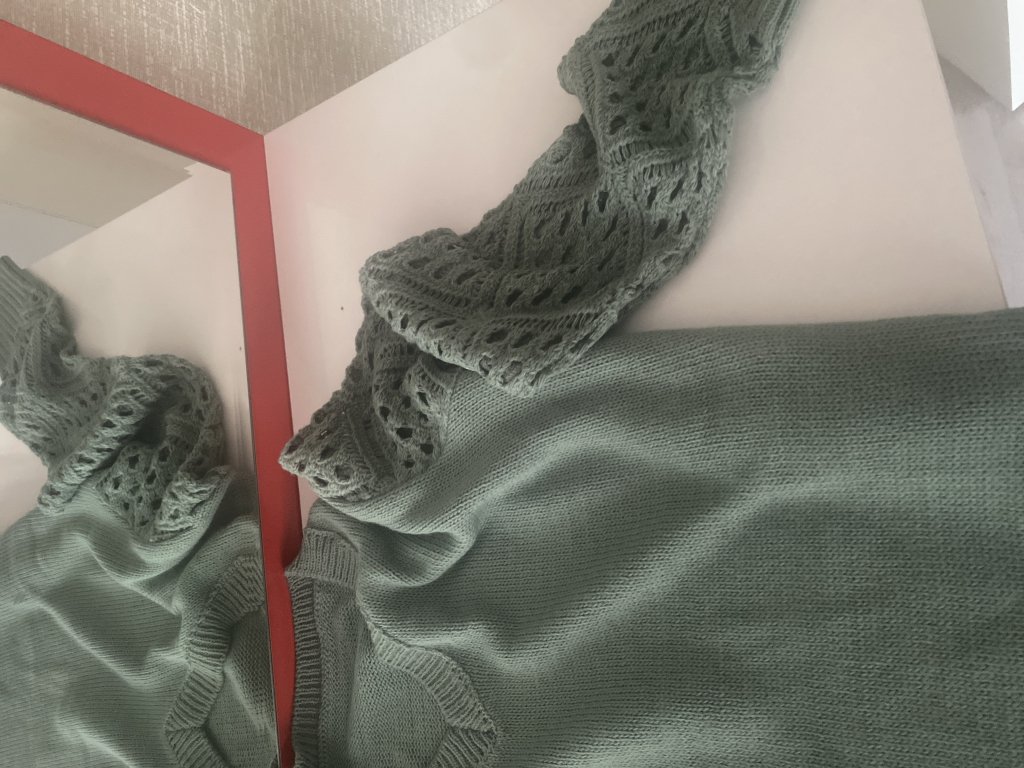 Kadın uzun kollu v yaka kol delikli baklava desen detaylı triko kazak