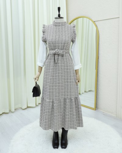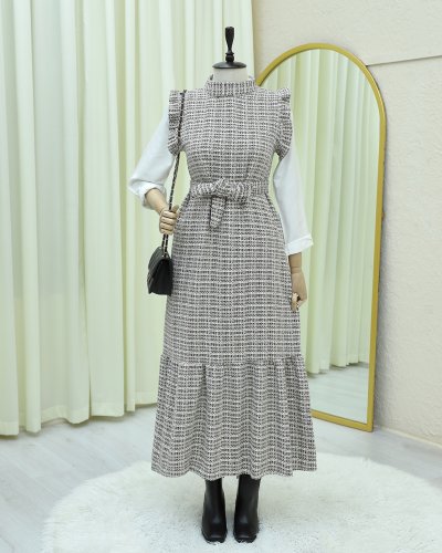 Kolları Fırfırlı Kemerli Tuvit Jile -Kahve
