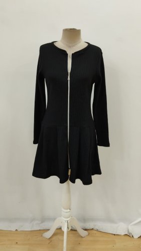 Kadın uzun kollu önden fermuarlı pileli şardonlu kaşkorse mini elbise