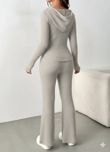 Kadın uzun kollu kapşonlu önden fermuarlı kaşkorse bluz ve pantolon ikili takım