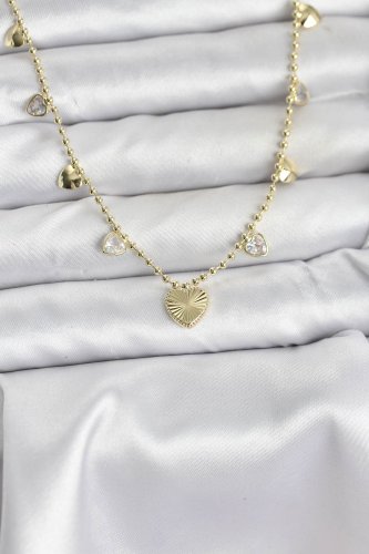 Pirinç Gold Renk Kalp Model Kadın Kolye