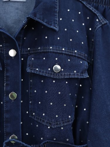 Serpme Taşlı Düğmeli Ceket Pantolon Kot Takım -Laci