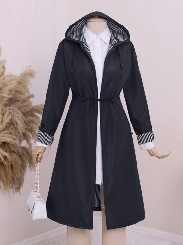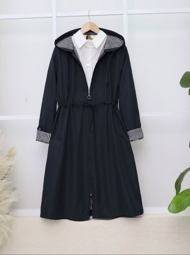 Beli Lastikli Kolu Katlamalı Kapşonlu Trenckot -Laci