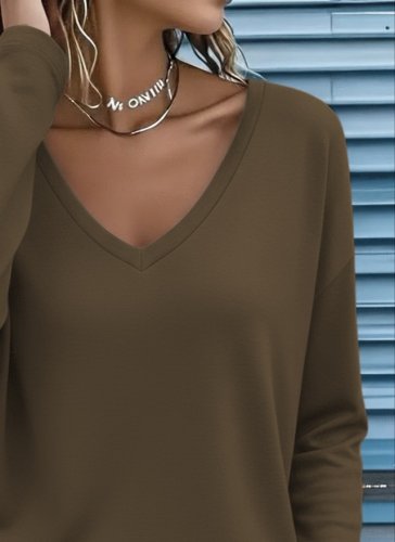 Kadın uzun kollu v yakalı viskon iki iplik bluz