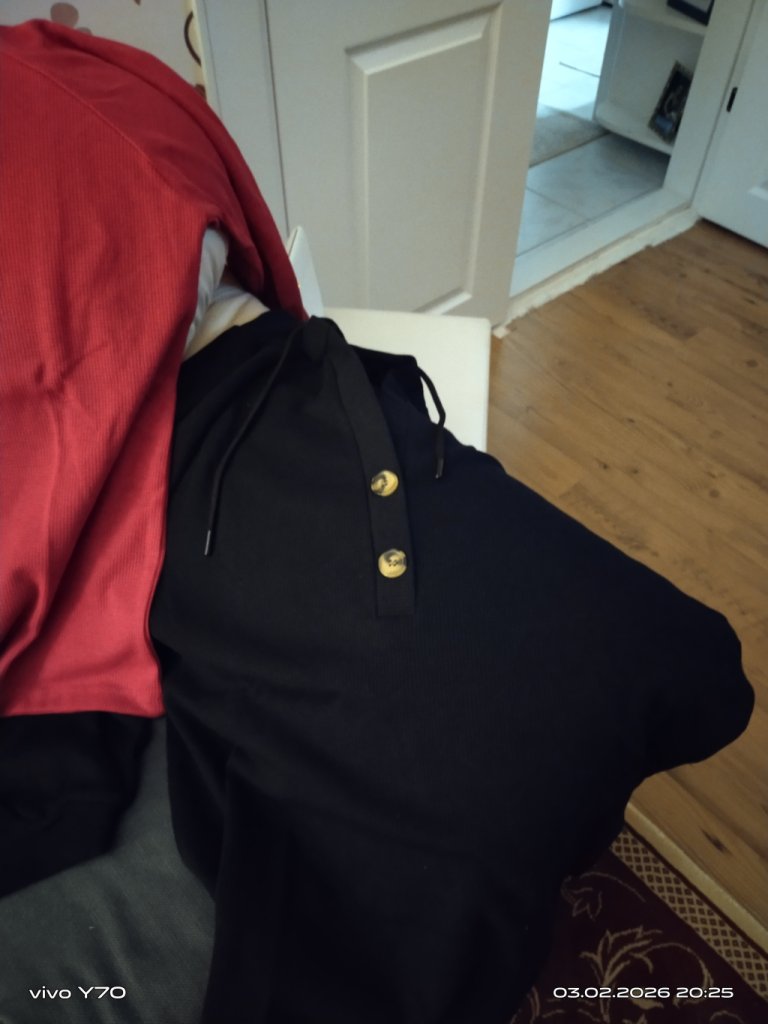 Kadın uzun kollu kapşonlu önü düğmeli ve bağcıklı waffle bluz