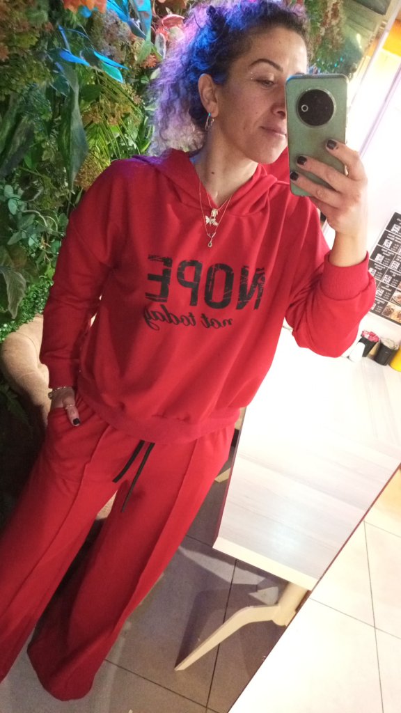 Kadın uzun kollu Nope baskılı beli ribanalı ikili takım