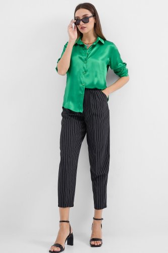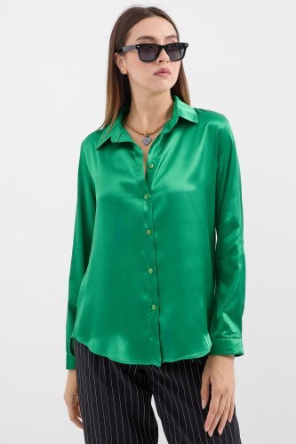3964 Hafif Dökümlü Saten Gömlek - Yeşil