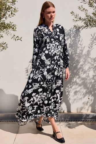 Siyah Beyaz Viskon Tesettür Elbise 2423