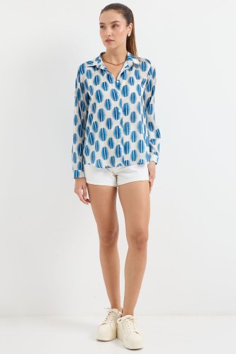 3964 Hafif Dökümlü Saten Gömlek - BMavi
