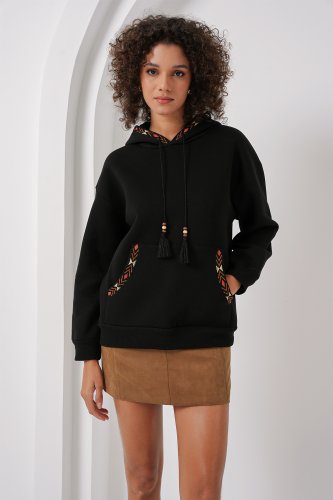 55443 Nakışlı Oversize Sweatshirt - Siyah