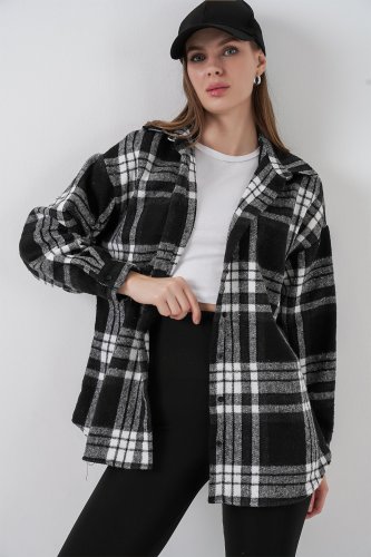 Ekose Desen Oversize Oduncu Gömlek 3854 D. Siyah