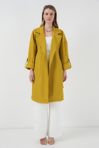 9104 Kruvaze Yaka Astarlı Trençkot - EYeşil