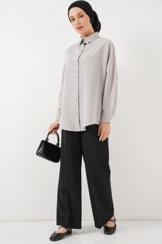 103901 Oversize Basic Tesettür Gömlek - A.Gri