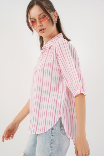 Çizgili Kısa Kol Gömlek 20345 - Pudra
