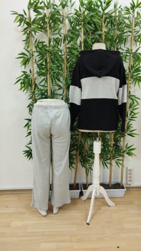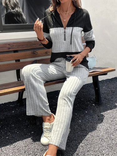 Kadın uzun kollu kapşonlu önden fermuarlı şardonlu kaşkorse bluz ve pantolon