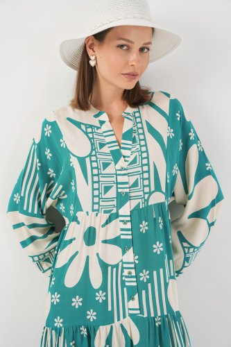 Desenli Uzun Tesettür Elbise 2585 - E.Mint