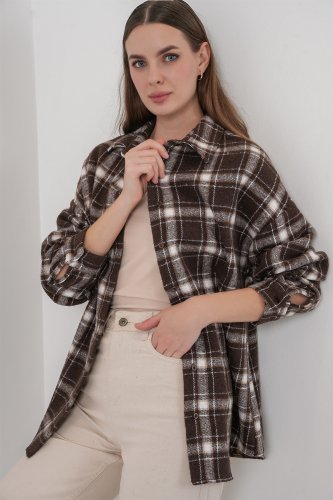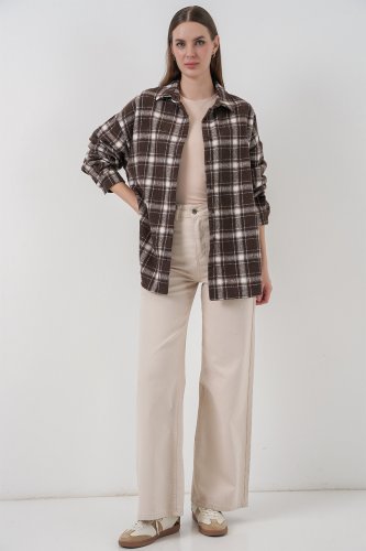 Ekose Desen Oversize Oduncu Gömlek 3854 C Kahverengi