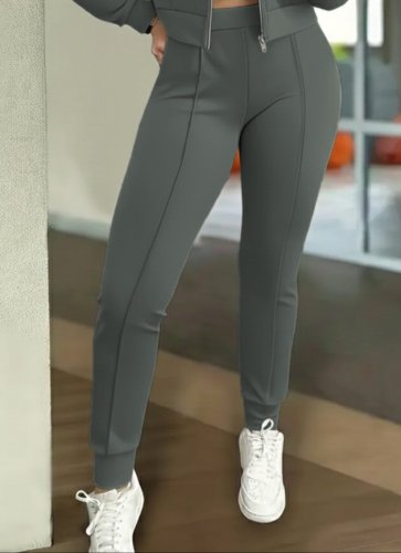 Kadın uzun kollu önden fermuarlı kısa modal ceket ve pantolon ikili takım