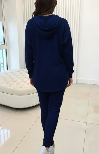Kadın uzun kollu kapşonlu meloni bluz ve pantolon ikili takım