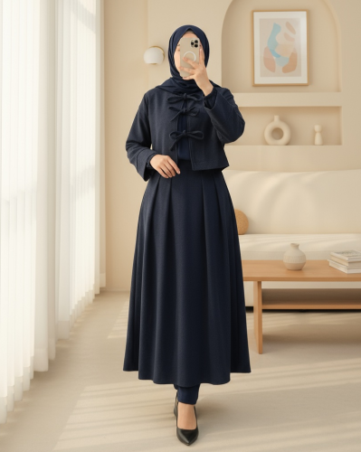 Önü Bağcıklı Etekli Kaşe Takım -Laci