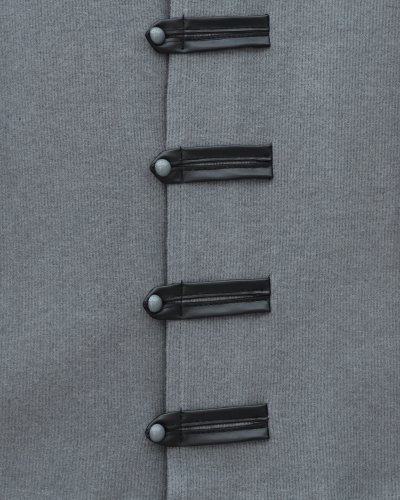 Deri Detaylı Önü Düğmeli Etekli Selanik Takım -Gri